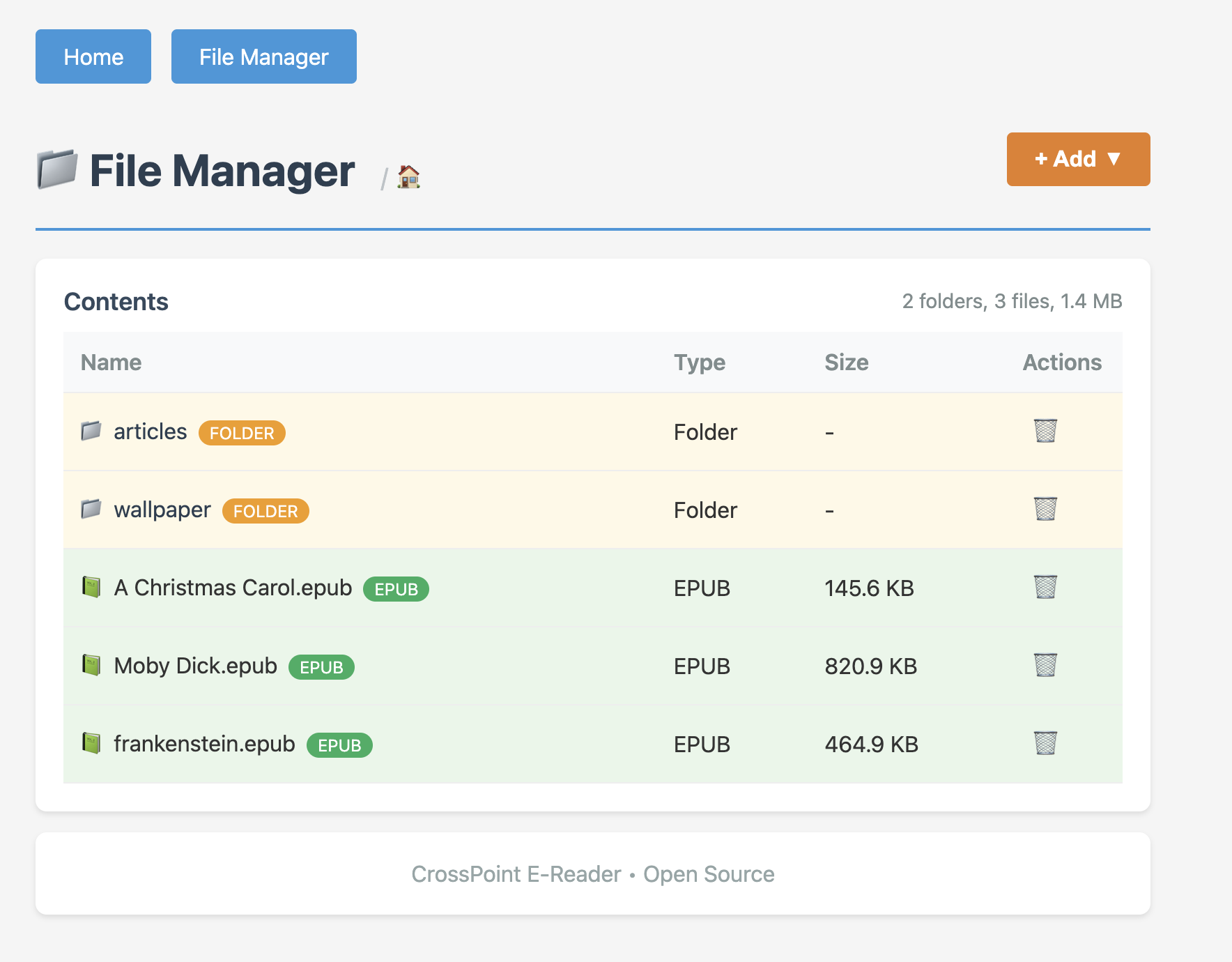 CrossPoint Reader includes a built-in web server that allows you to: